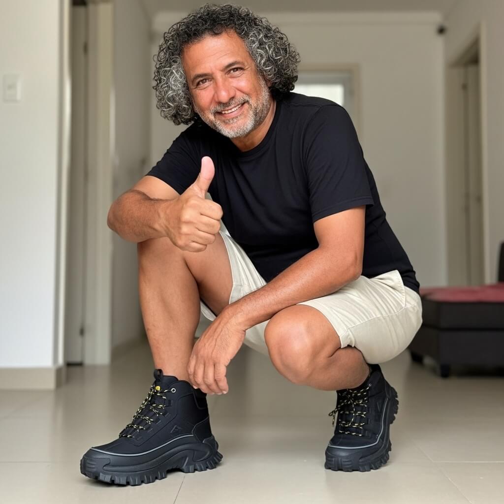 Totalmente impermeable, esta bota enfrenta lluvia, barro y charcos sin dejar pasar ni una gota. El interior se mantiene seco, transpirable y cómodo incluso en las condiciones más extremas. Perfecta para los que están siempre en movimiento y no se detienen por el clima — todo eso con un diseño rudo que impone respeto donde sea que vayas.